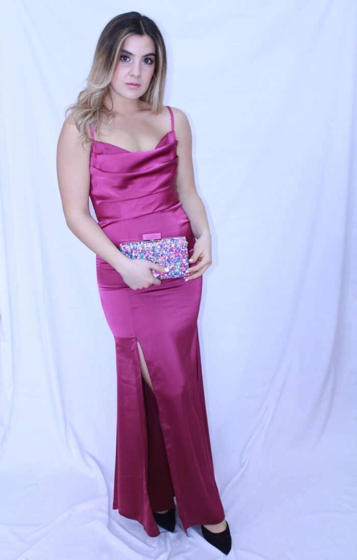Vestido satinado pecho lazado