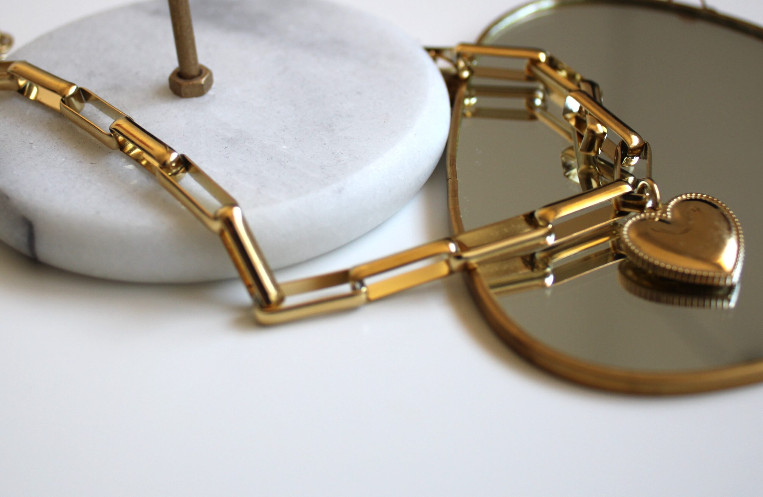 Descripción: Collar corto dorado de cadena y con un corazón. No pesa.
