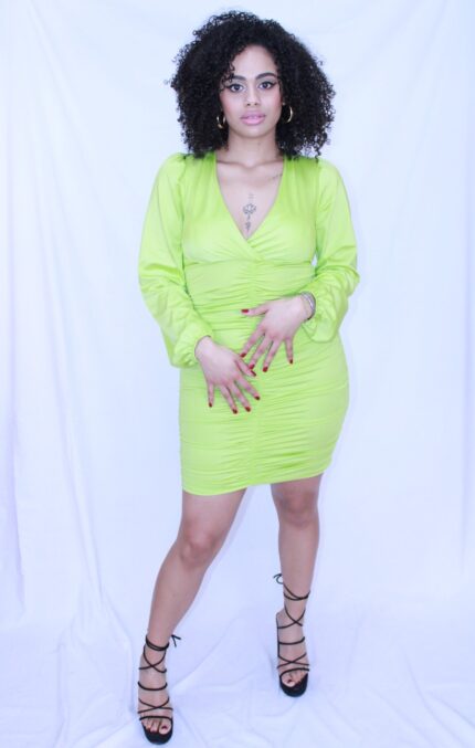 Descripción: Vestido midi de lycra con escote drapeado, tiene una abertura en la pierna, la espalda descubierta y capucha.